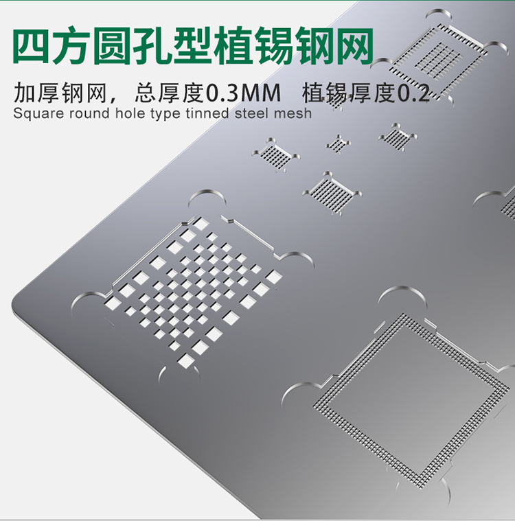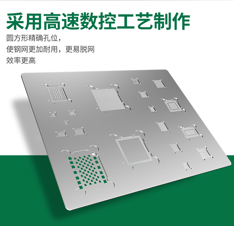 ? 产品名称: 3D凹槽定位植锡钢网? 产品型号: BST-A8? 产品类别: 植锡网系列
