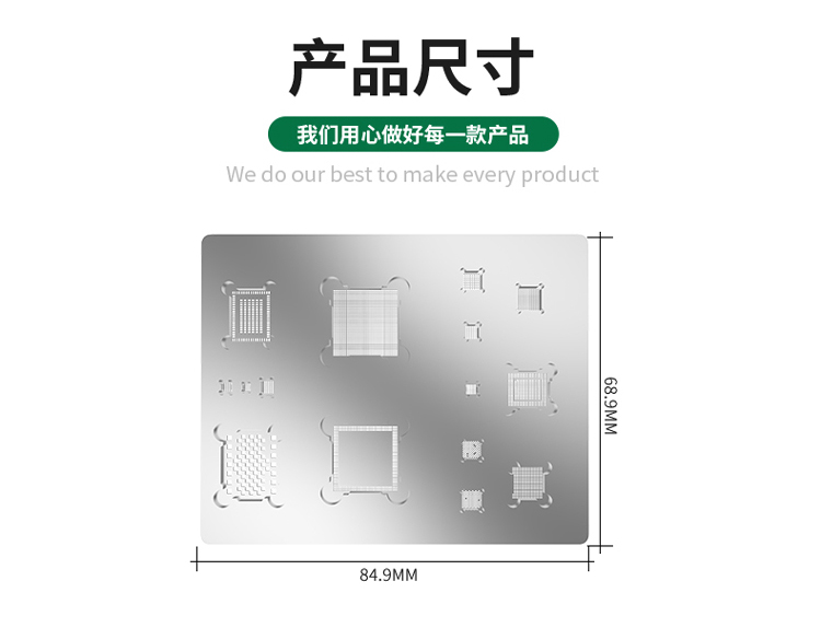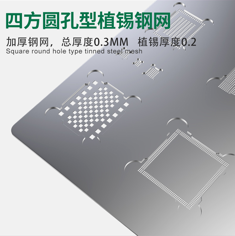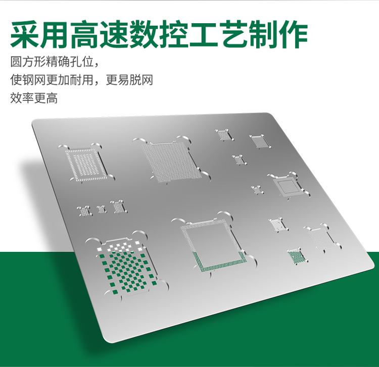? 产品名称: 3D凹槽定位植锡钢网? 产品型号: BST-A9? 产品类别: 植锡网系列