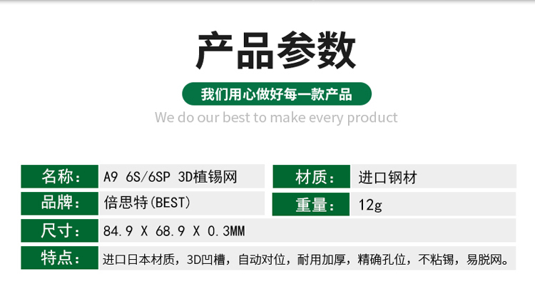 返回当前位置: 首页 / 产品中心 / BST-A9 iP6S/6SP 3D植锡网 3D凹槽定位植锡钢网