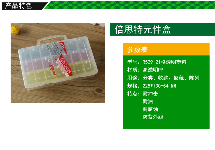 ? 产品名称: 21格透明塑料元件盒? 产品型号: BST-R529? 产品类别: 元件盒系列