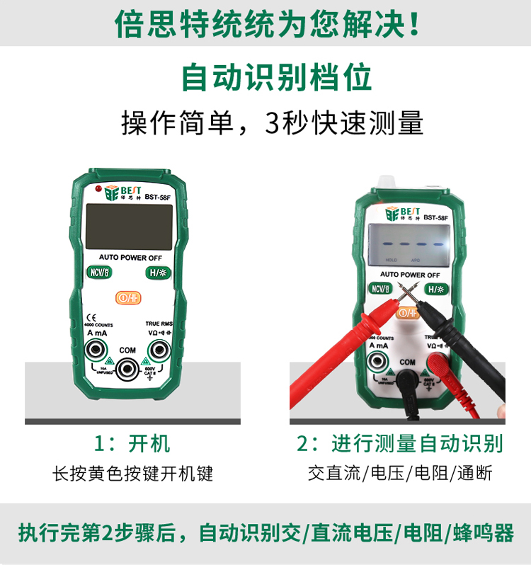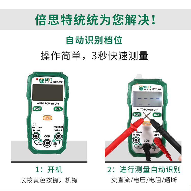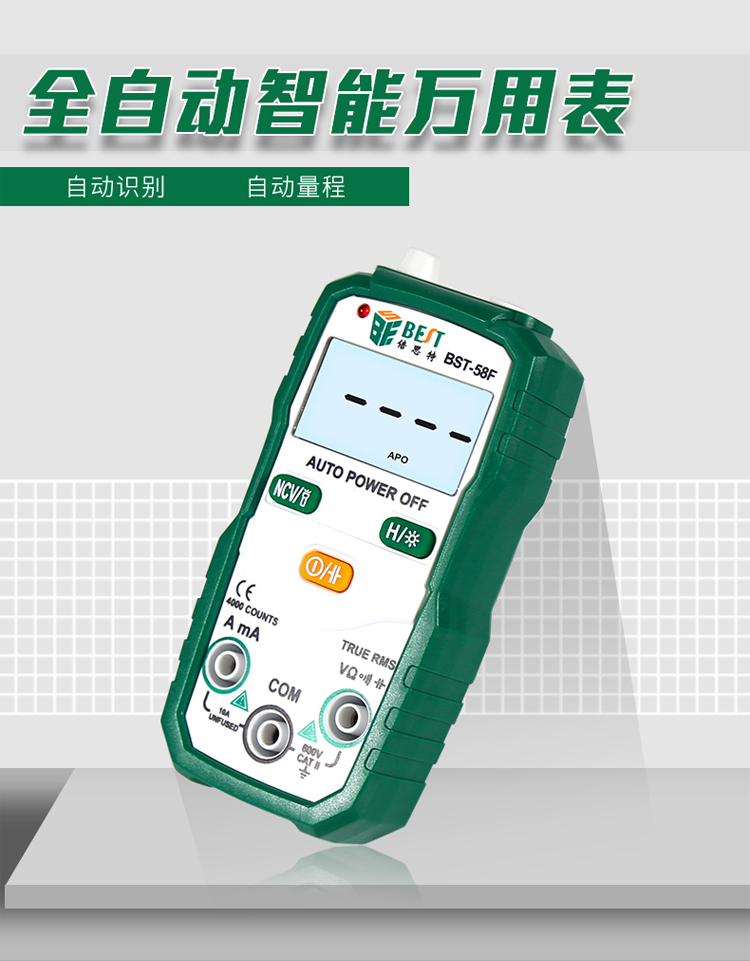 返回当前位置: 首页 / 产品中心 / BST-58F 全自动量程万用表 无需拨档智能识别数字万用表 家用迷你电工仪表