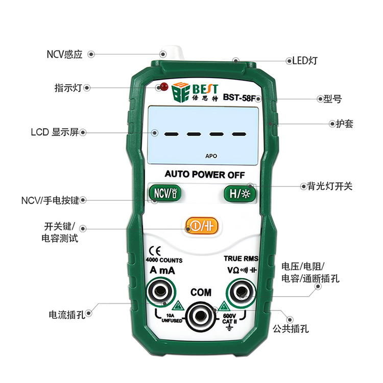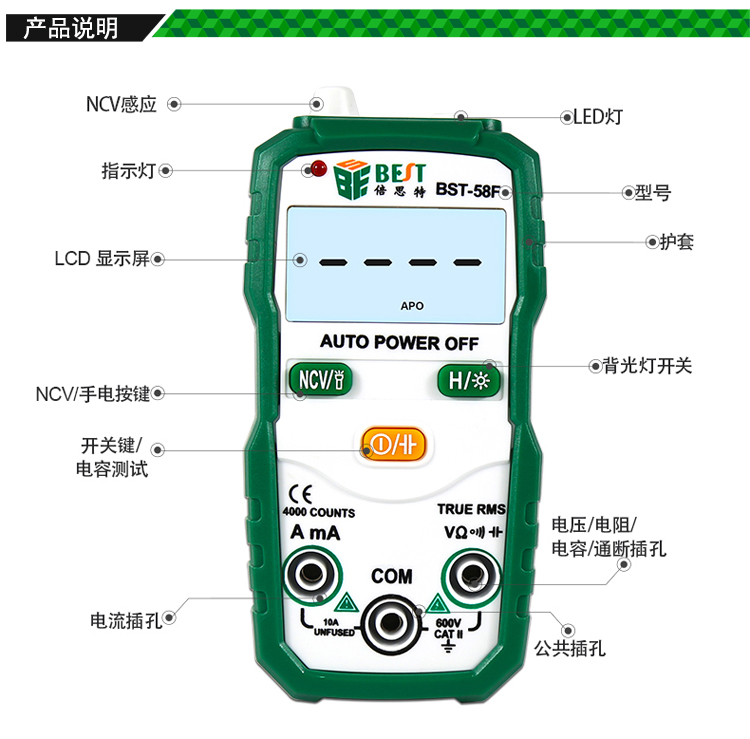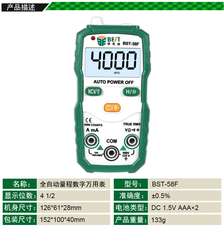? 产品名称: 全自动量程万用表? 产品型号: BST-58F? 产品类别: 万用表系列
