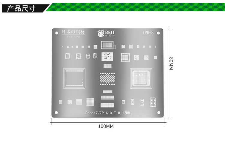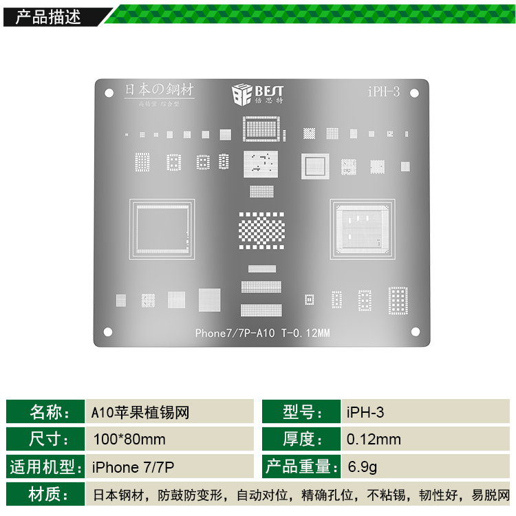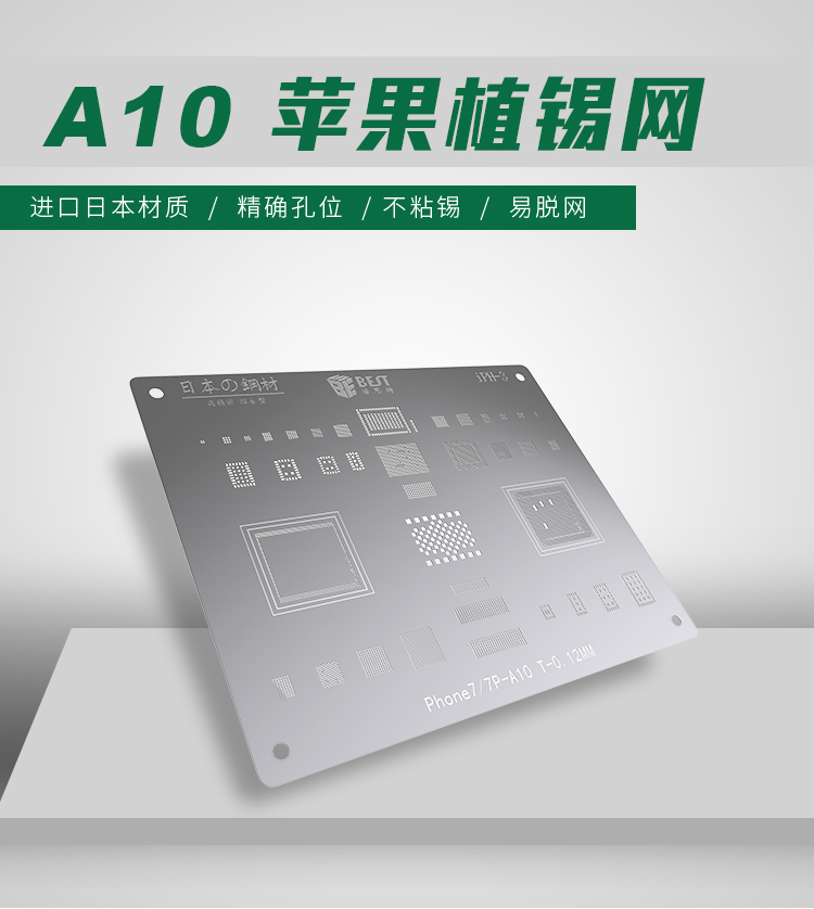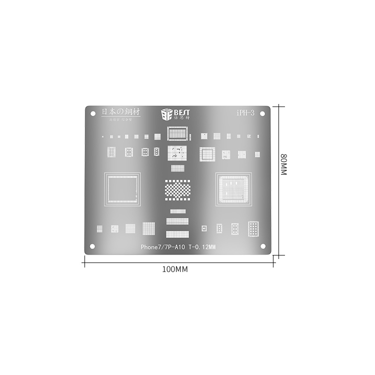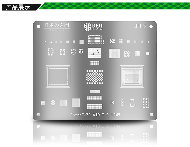 ? 产品名称: iPhone 7/7P-A10 BGA植锡网? 产品型号: iPH-3? 产品类别: 植锡网系列