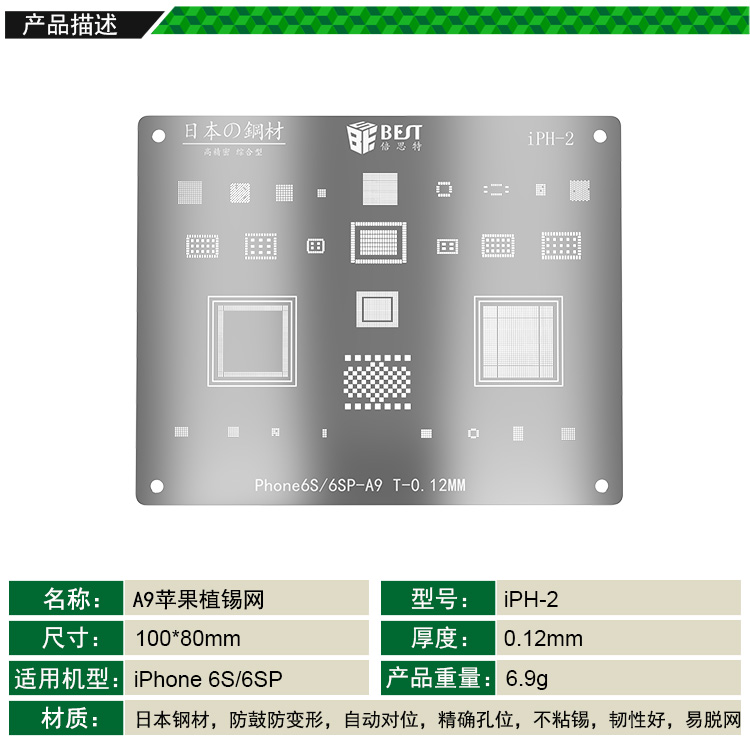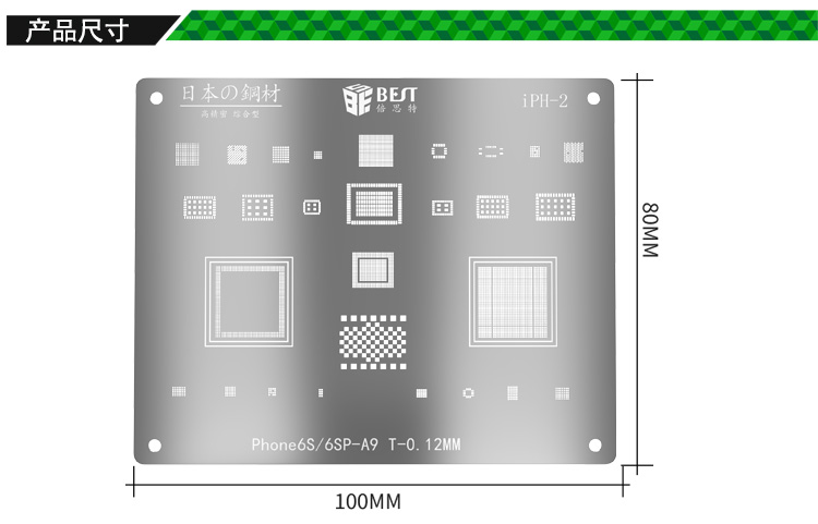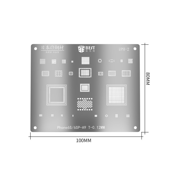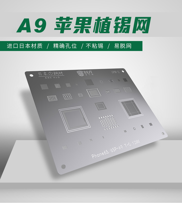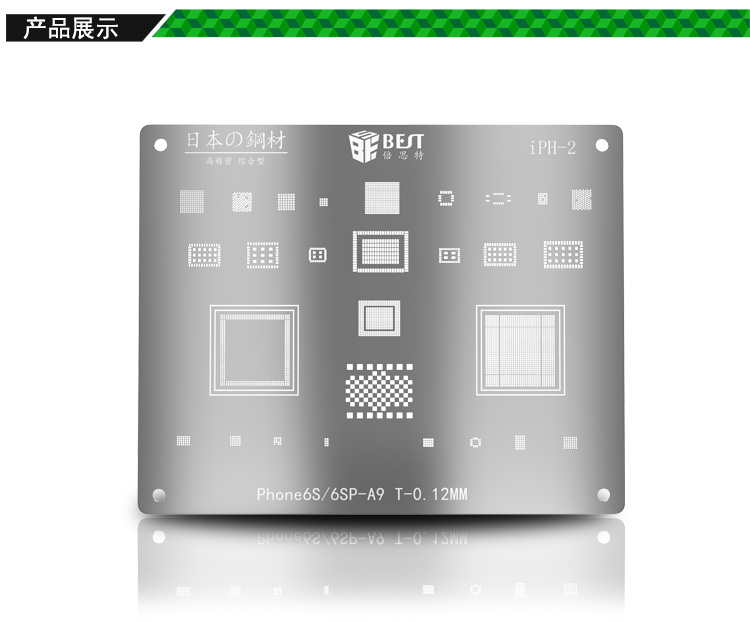 ? 产品名称: iPhone 6S/6SP-A9 BGA植锡网? 产品型号: iPH-2? 产品类别: 植锡网系列