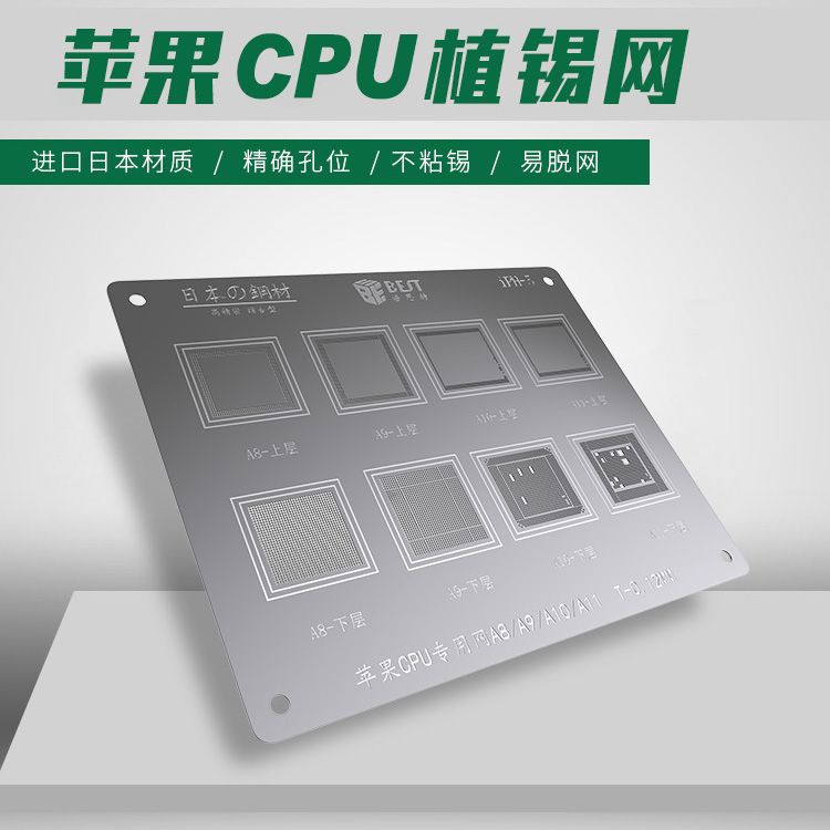 ? 产品名称: A8/A9/A10/A11 CPU专用植锡网? 产品型号: iPH-5? 产品类别: 植锡网系列