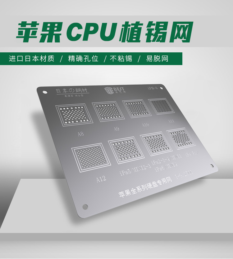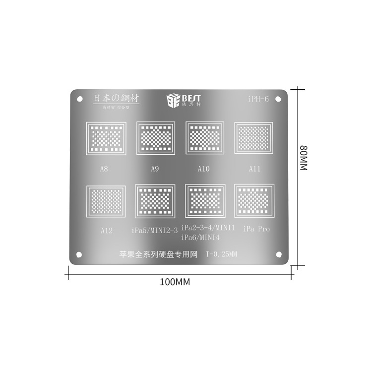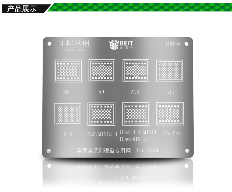 返回当前位置: 首页 / 产品中心 / iPH-6 iP全系列CPU硬盘专用植锡网 多用植锡方孔定位钢网 植锡卡