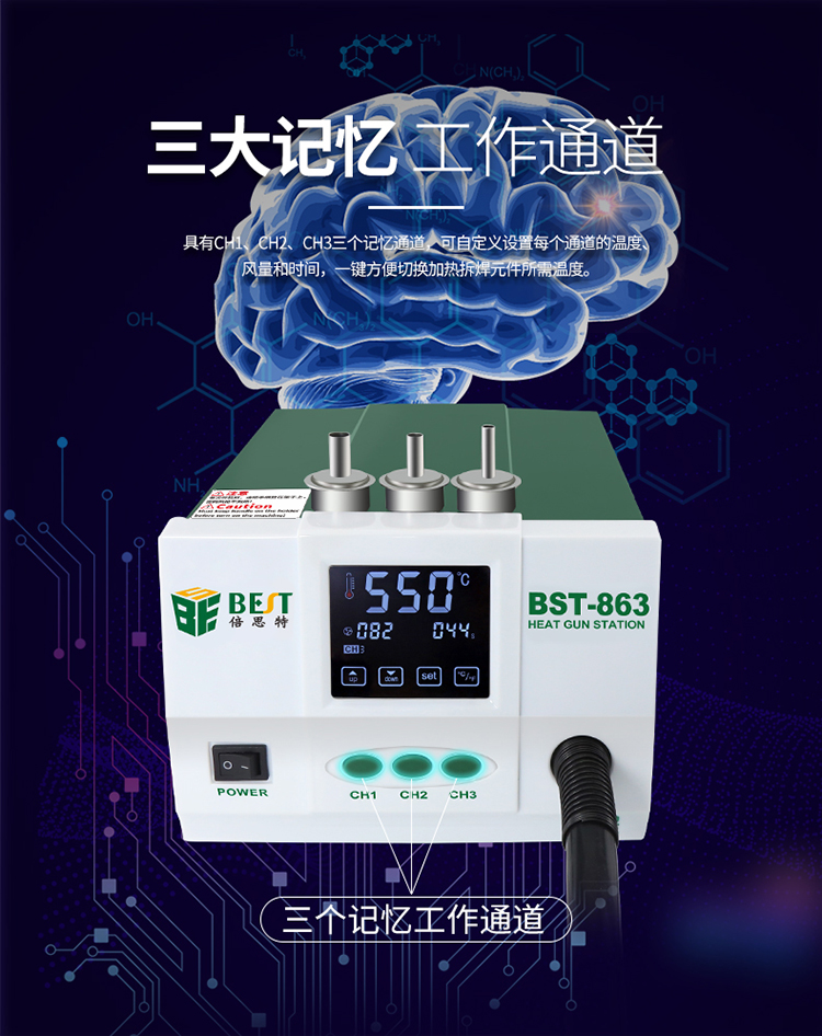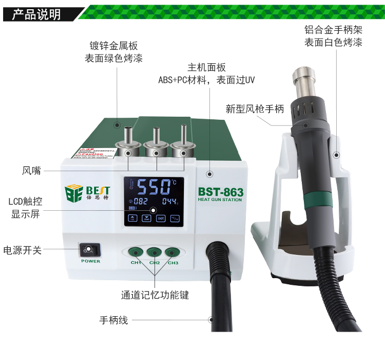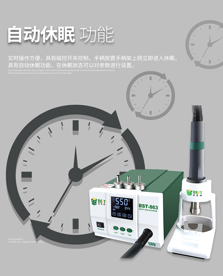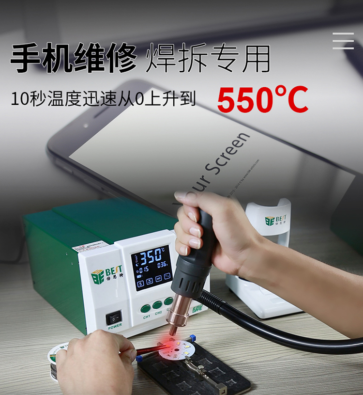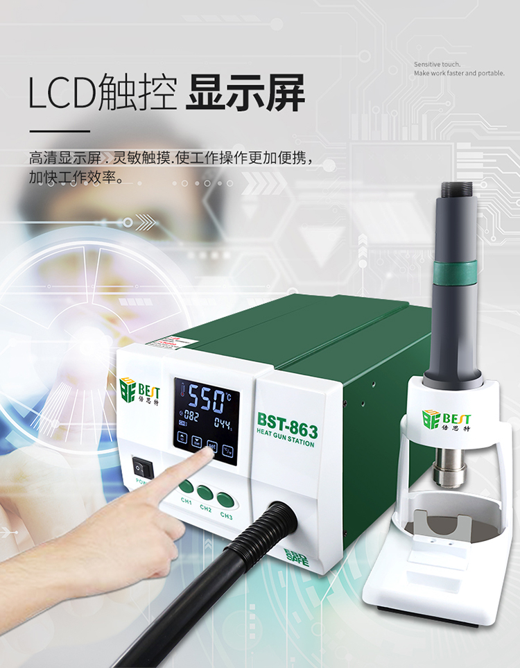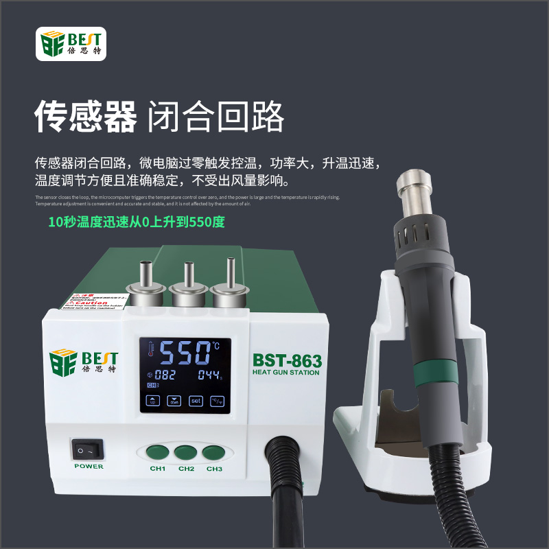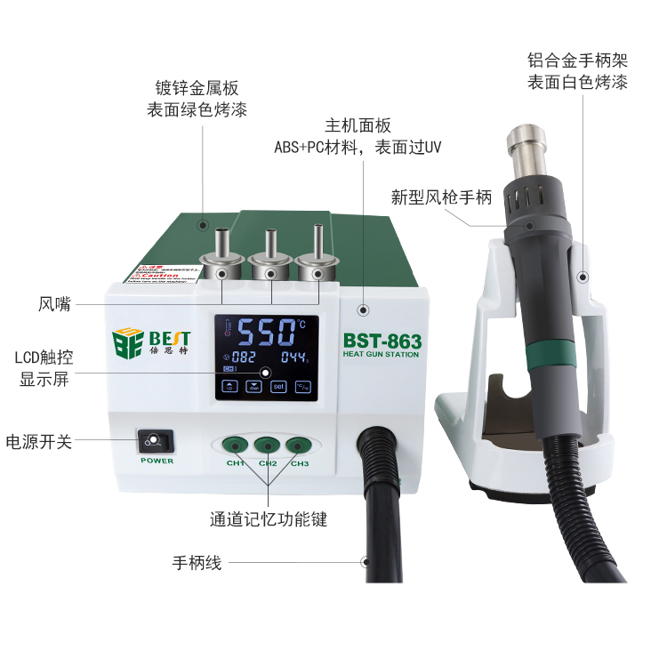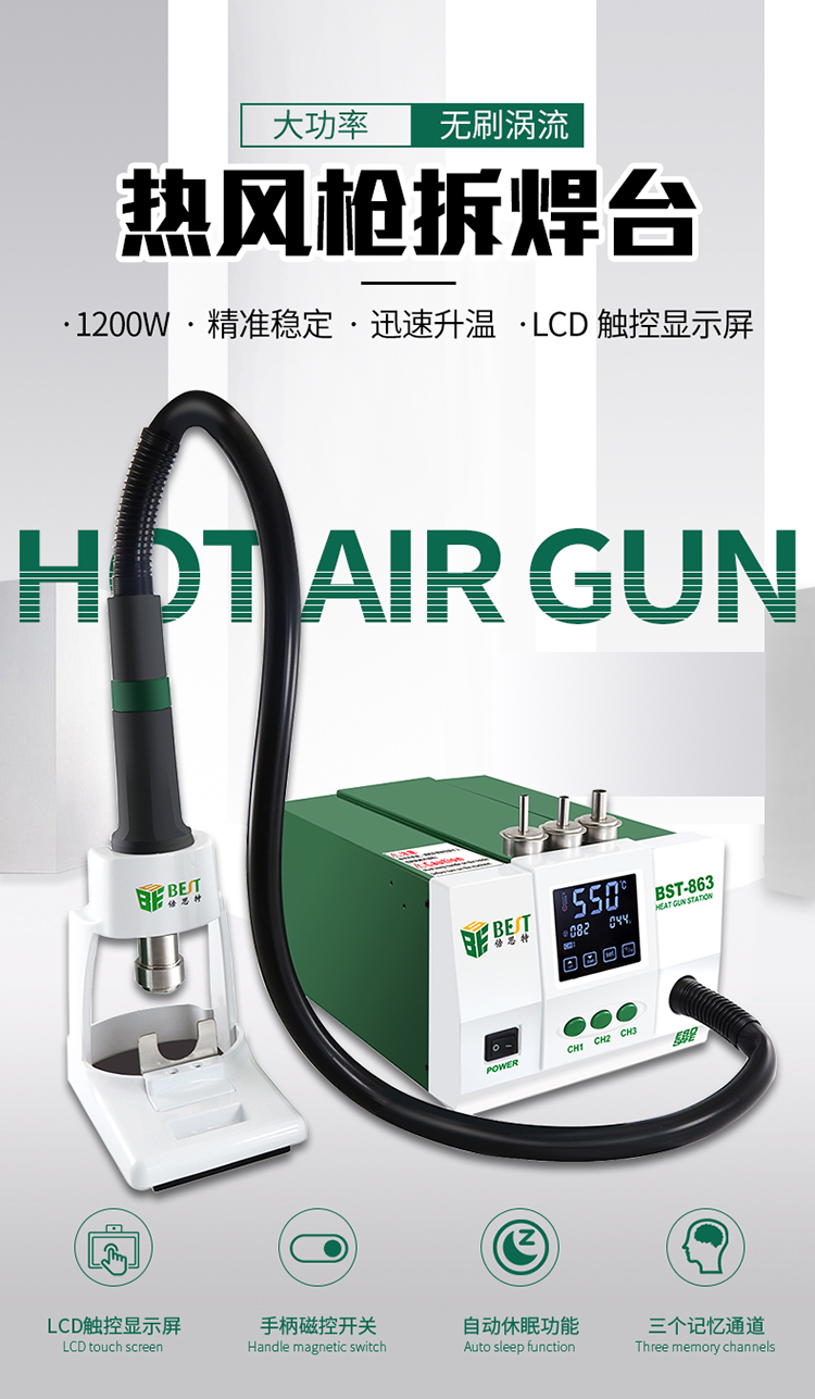 返回当前位置: 首页 / 产品中心 / BST-863 智能数显触控恒温热风枪 数显液晶触控无铅手机维修工业级高频可调热风拆焊台