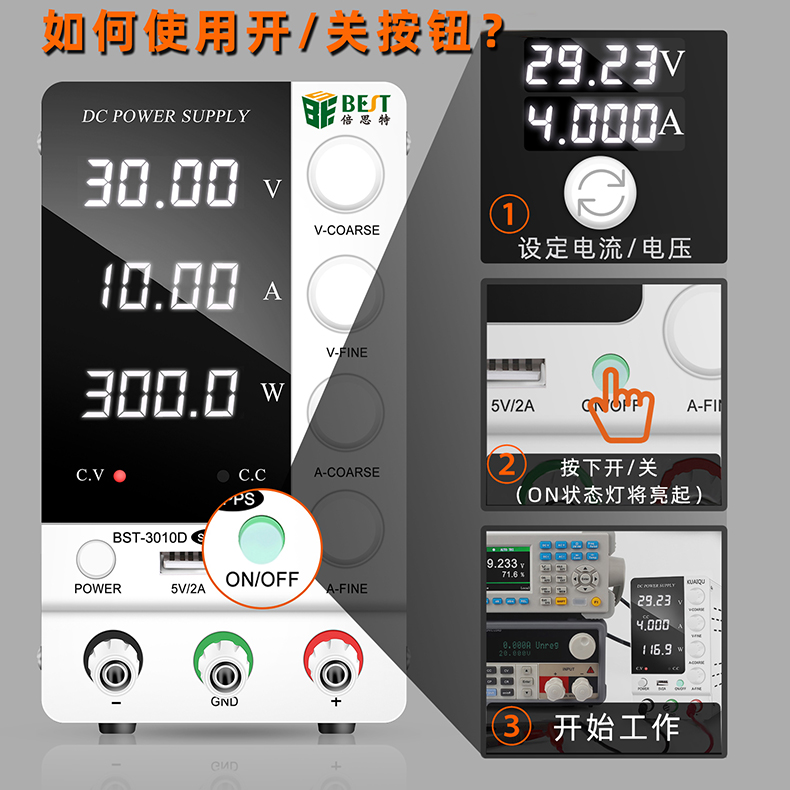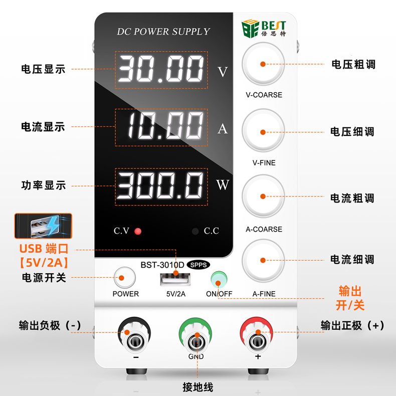 返回当前位置: 首页 / 产品中心 / BST-3010D SPPS 开关型直流稳压电源 固测可调直流稳压电源30V/10A笔记本电脑手机维修开关电源