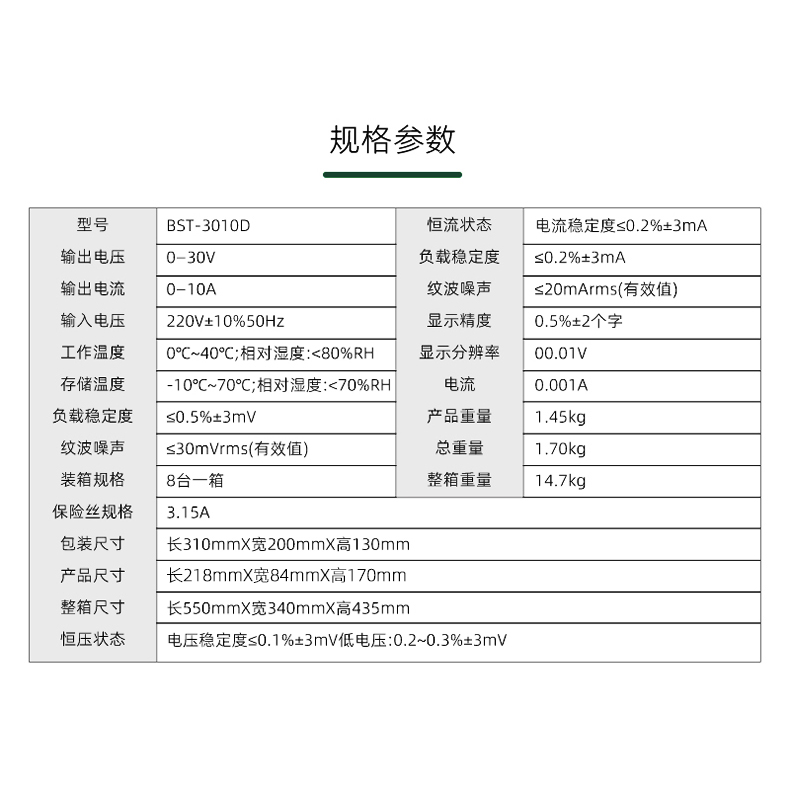 ? 产品名称: 开关直流稳压电源? 产品型号: BST-3010D SPPS? 产品类别: 直流电源系列