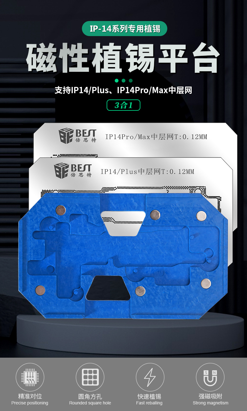 ? 产品名称: 苹果14系列磁性植锡平台? 产品型号: BST-084? 产品类别: 植锡网系列