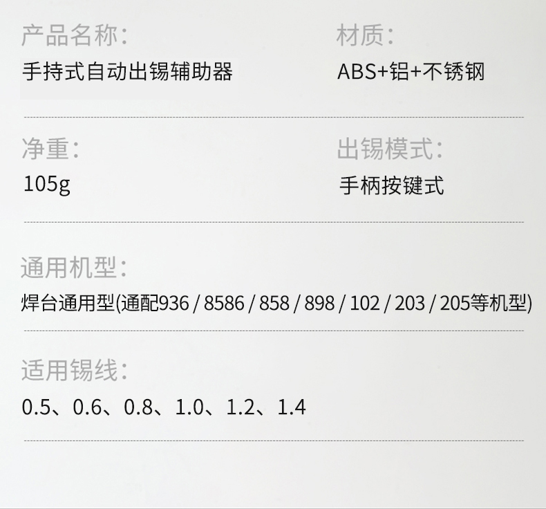 ? 产品名称: 自动出锡辅助器? 产品型号: BST-819? 产品类别: 焊接工具系列