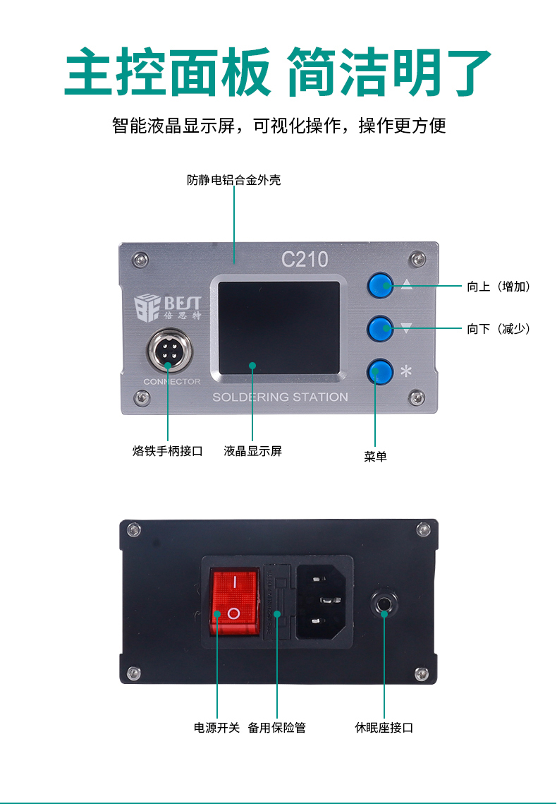 ? 产品名称: 智能多功能焊台? 产品型号: BST-C210? 产品类别: 焊台烙铁系列