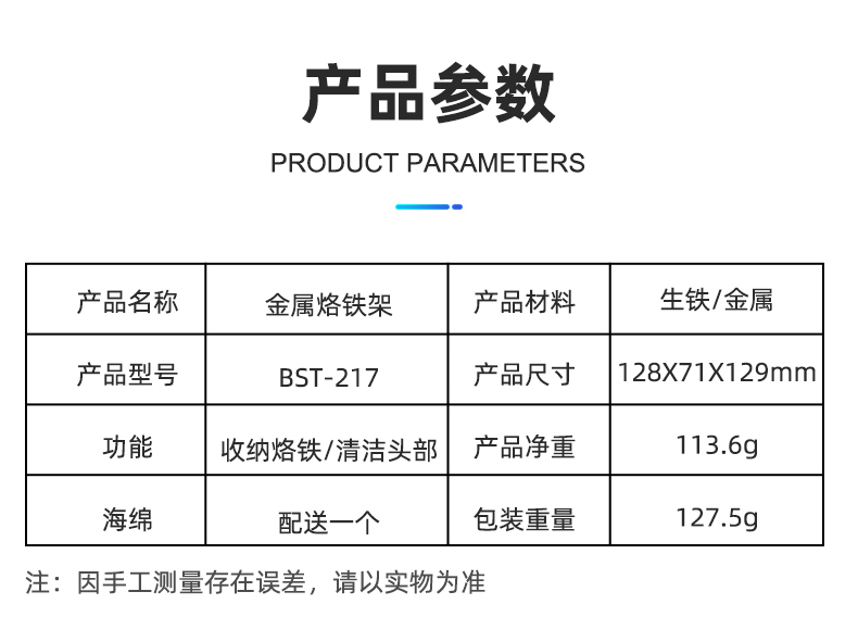 ? 产品名称: 金属烙铁架? 产品型号: BST-217? 产品类别: 焊接工具系列