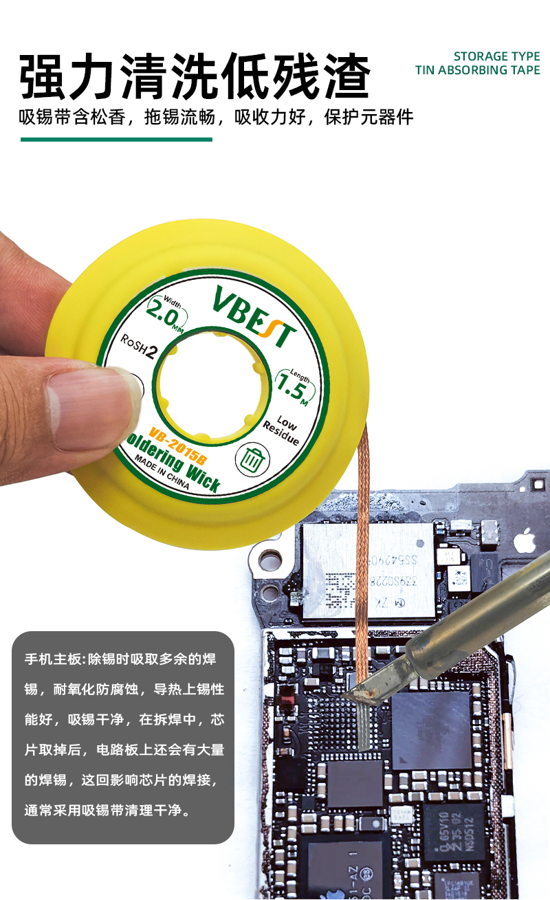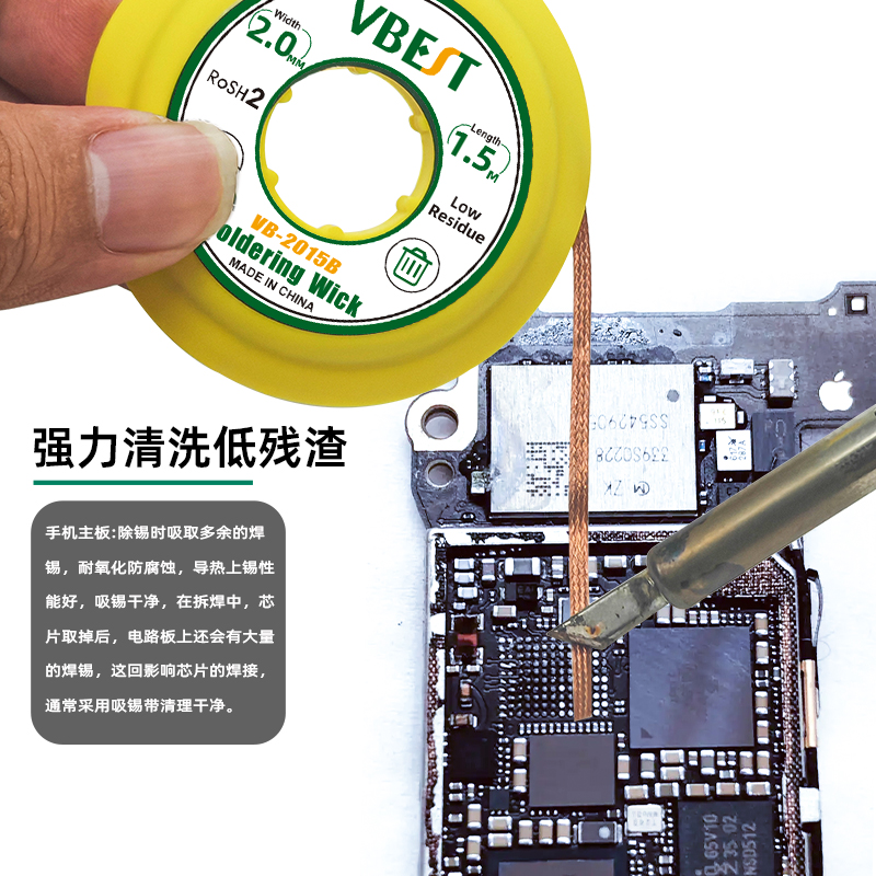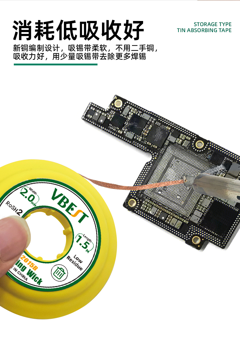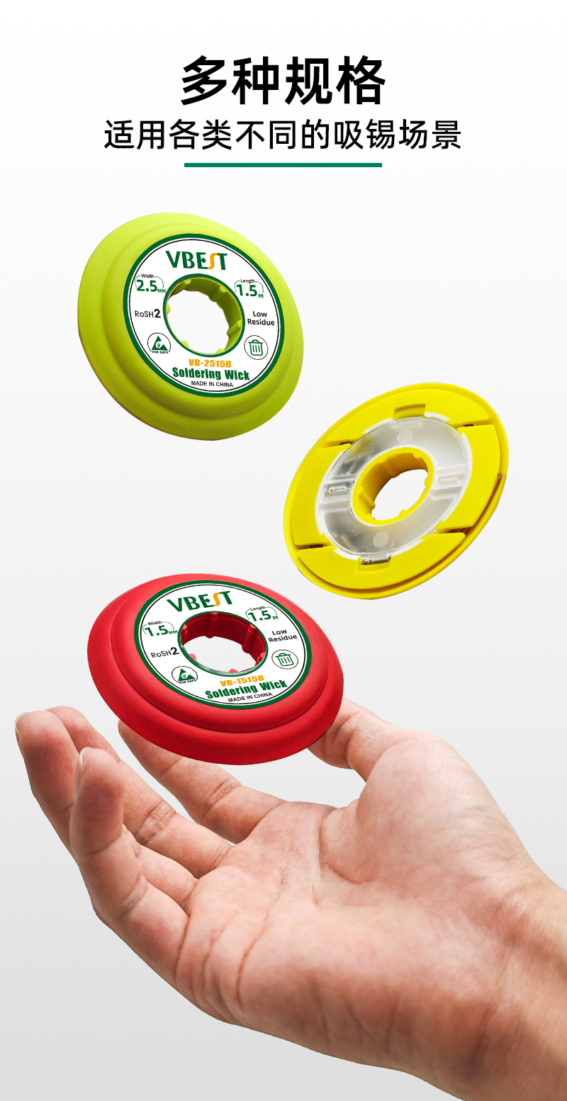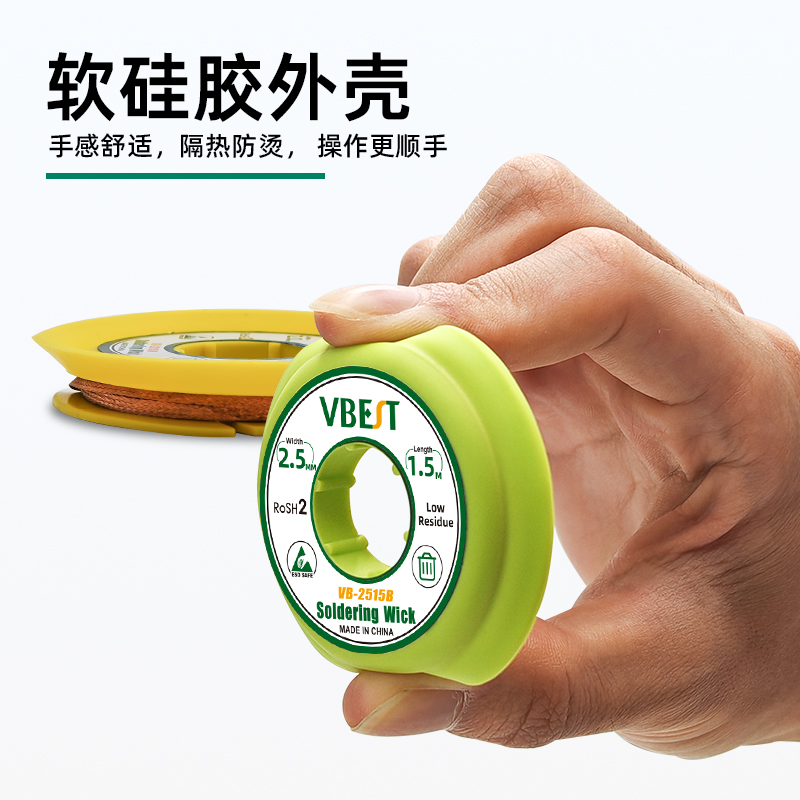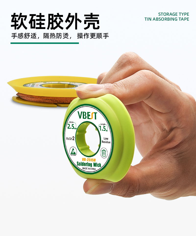 返回当前位置: 首页 / 产品中心 / VB-1515B/2015B/2515B 收纳吸锡线 非卤素低残渣免清洗吸锡带 纯铜丝精密编织 收纳型软硅胶外壳