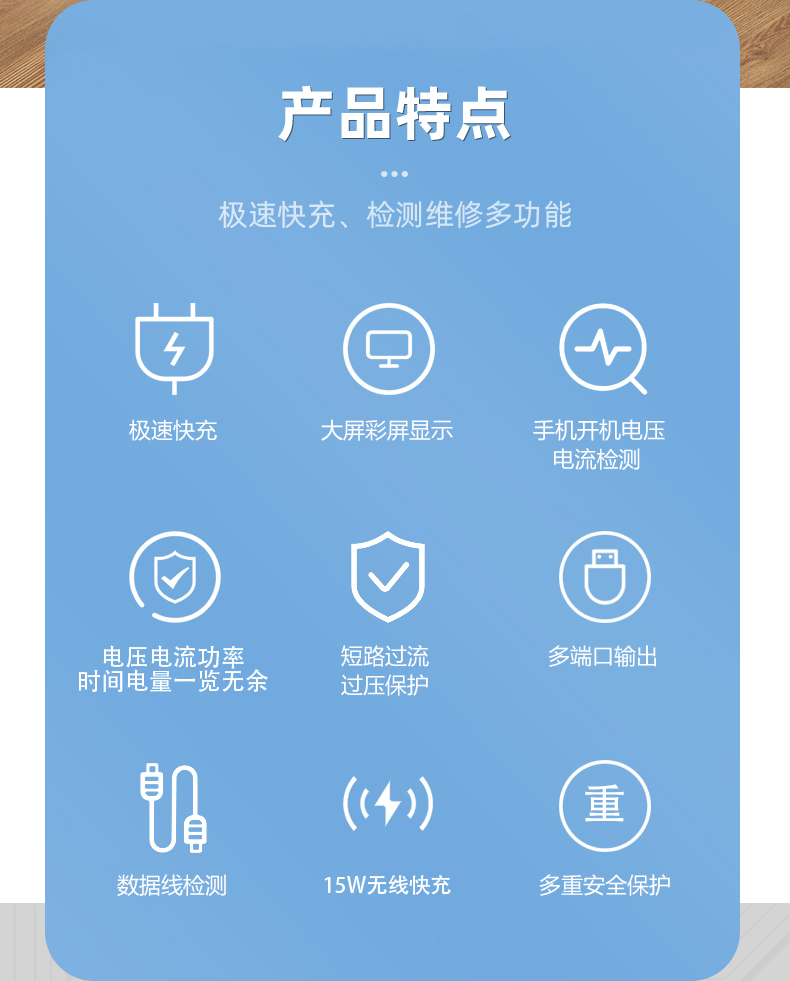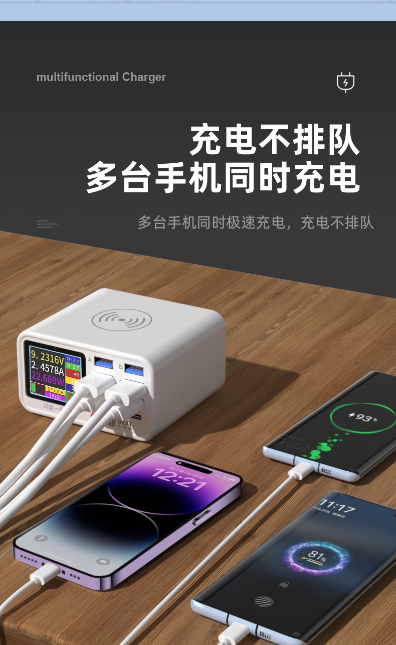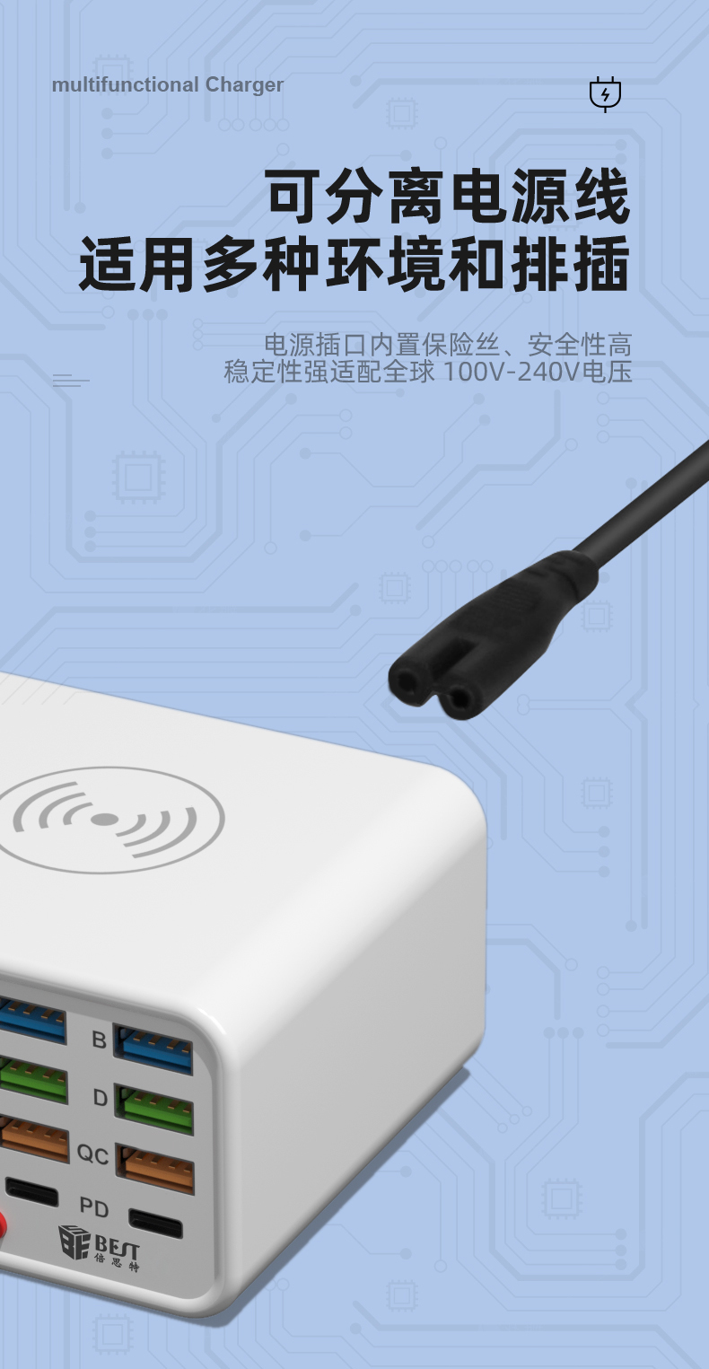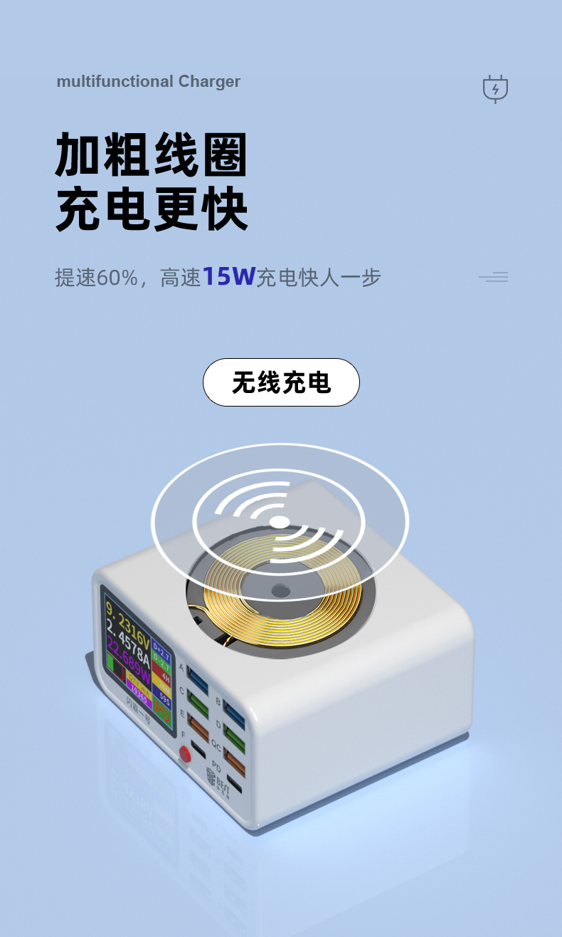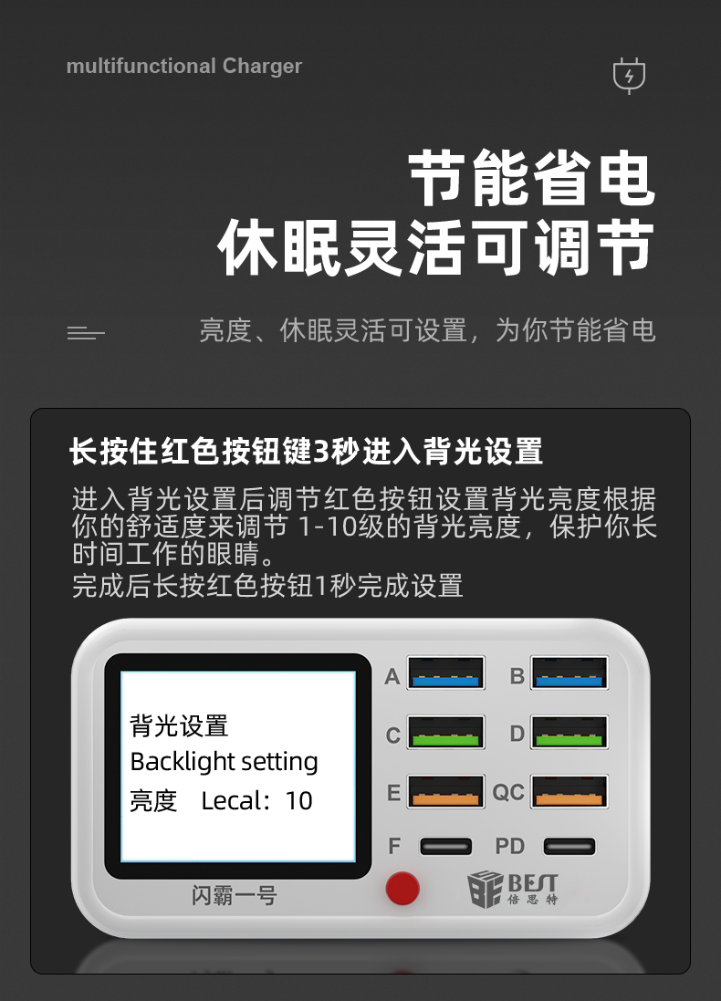 返回当前位置: 首页 / 产品中心 / BST-S1 闪霸一号 多功能8口可视化USB充电器 极速快充 无线快充 检测维修一体数显充电器