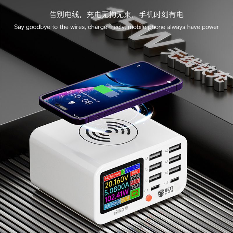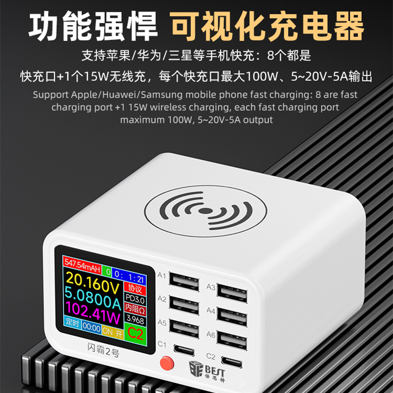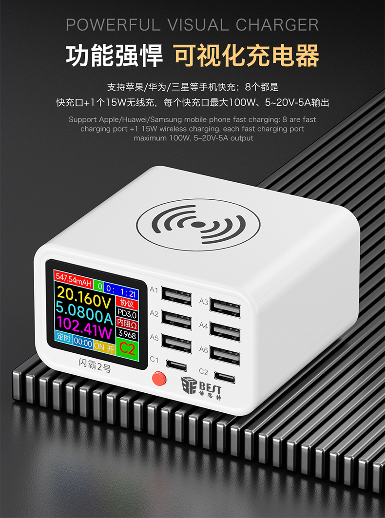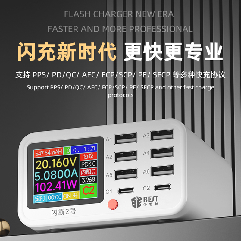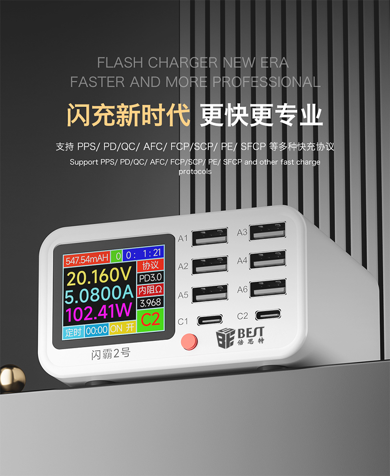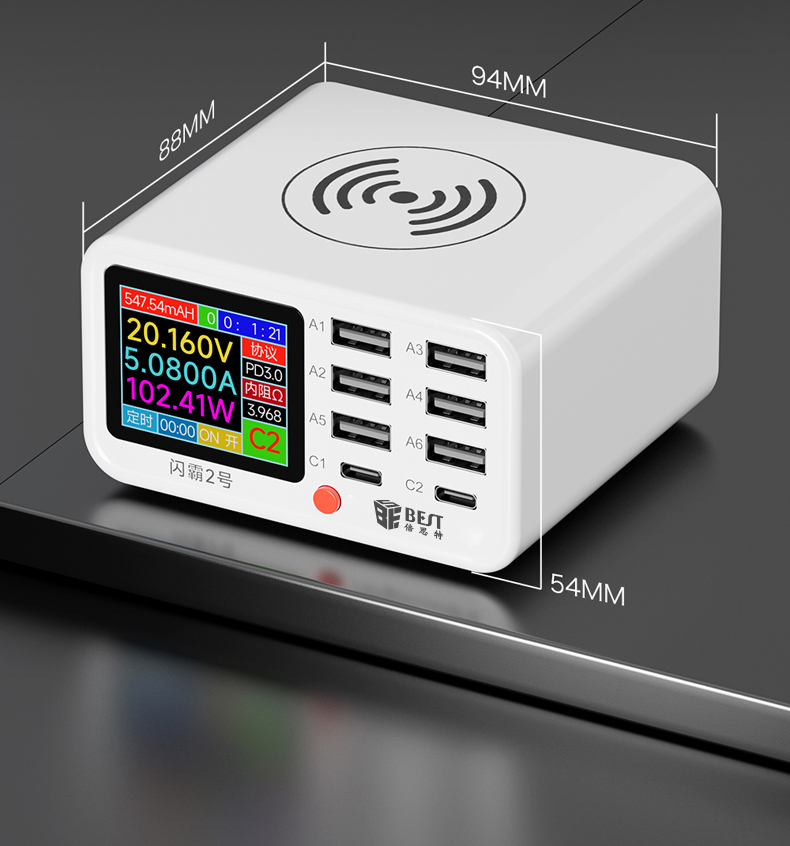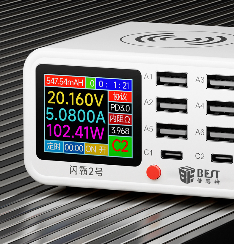 返回当前位置: 首页 / 产品中心 / BST-S2 闪霸二号 多功能8口可视化USB充电器 极速快充 无线快充 检测维修一体数显充电器