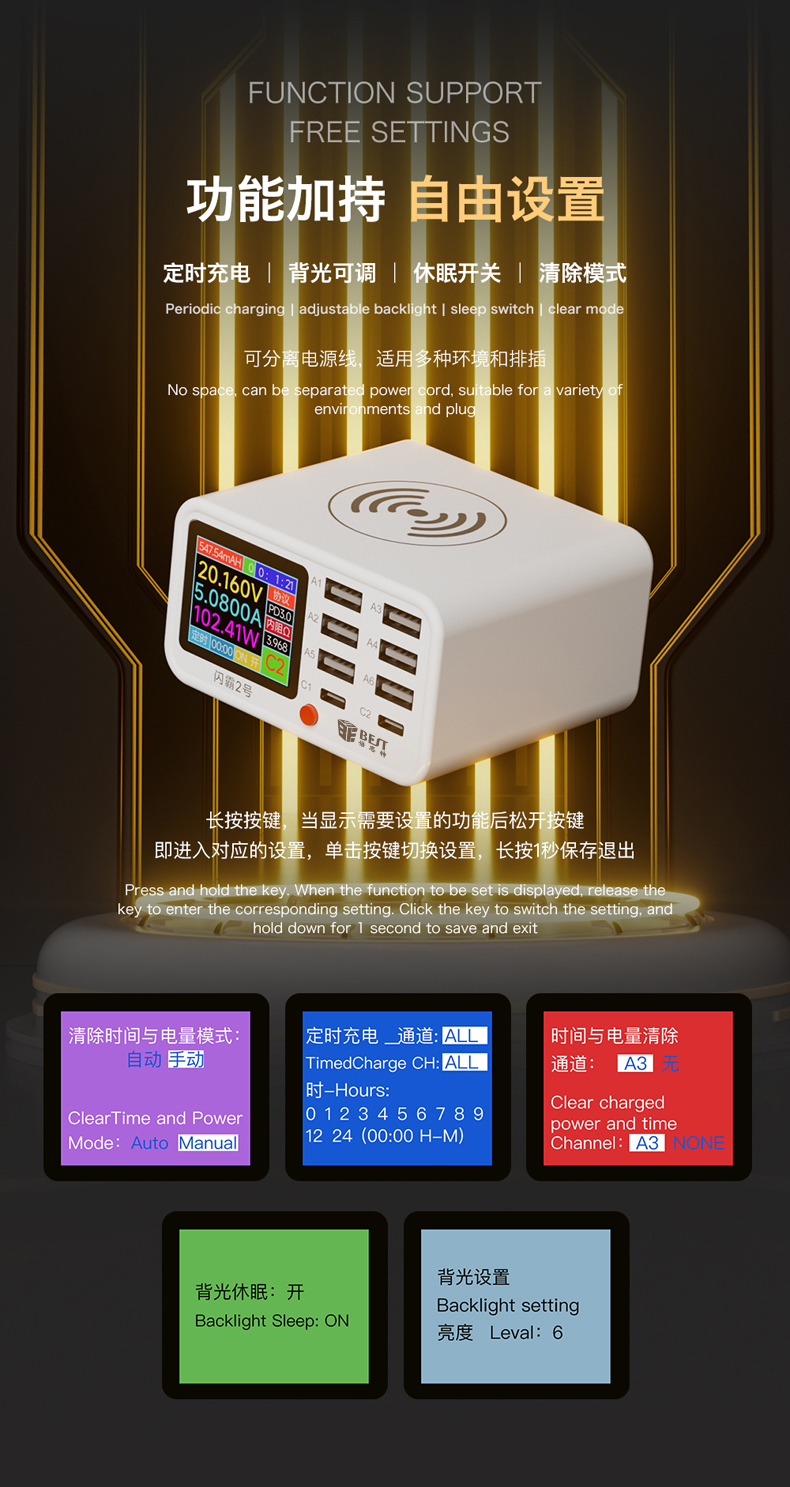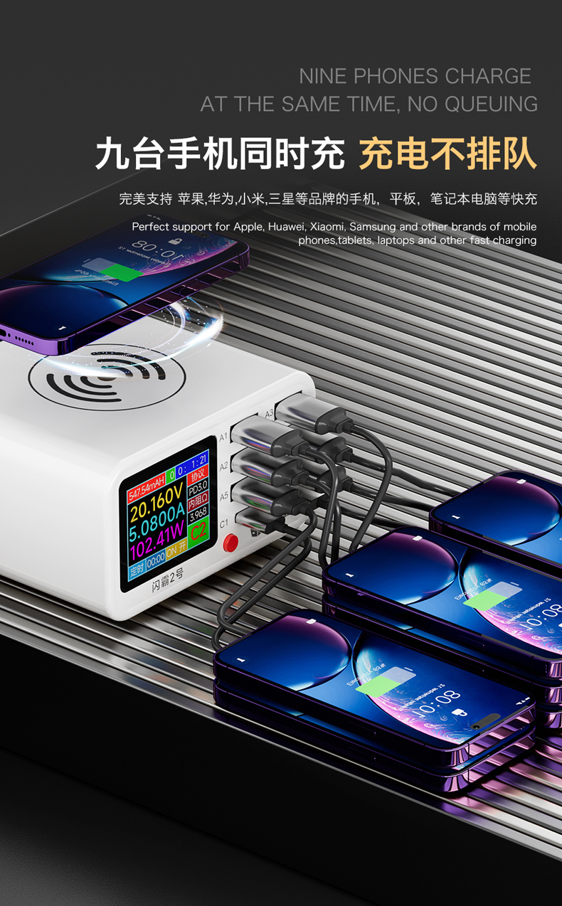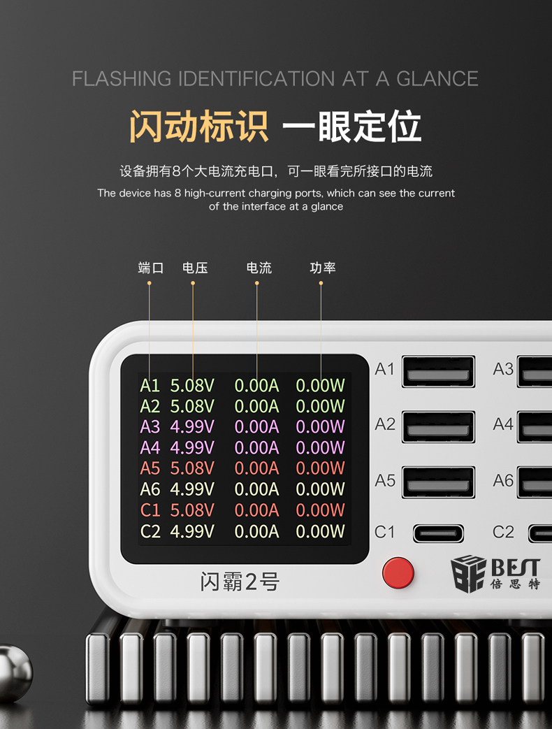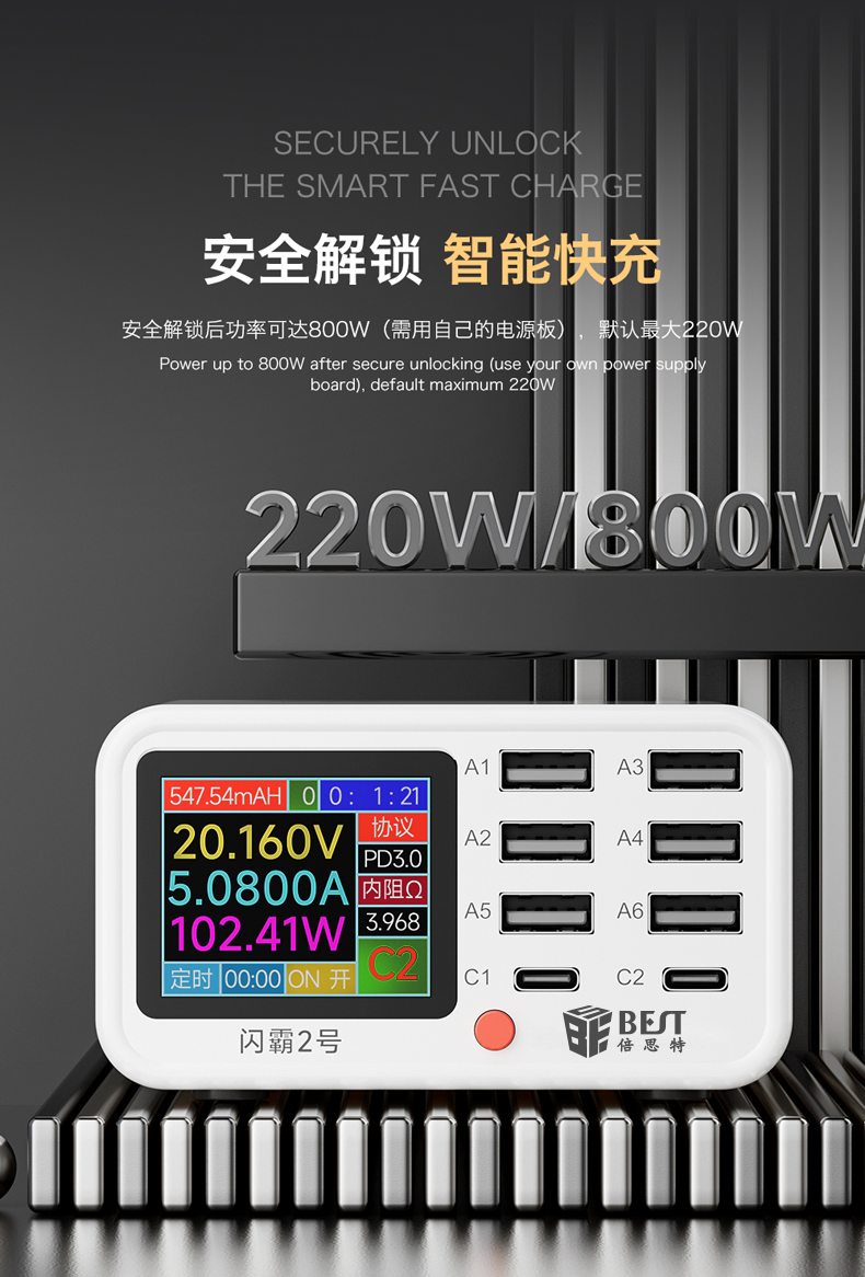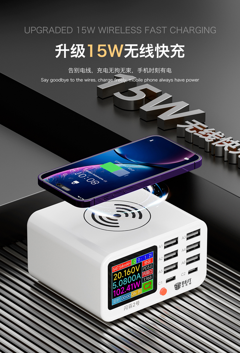 返回当前位置: 首页 / 产品中心 / BST-S2 闪霸二号 多功能8口可视化USB充电器 极速快充 无线快充 检测维修一体数显充电器